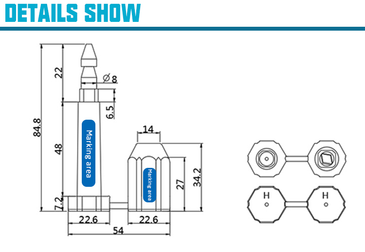 1. Security bolt seal the bottom is marked with H, high security